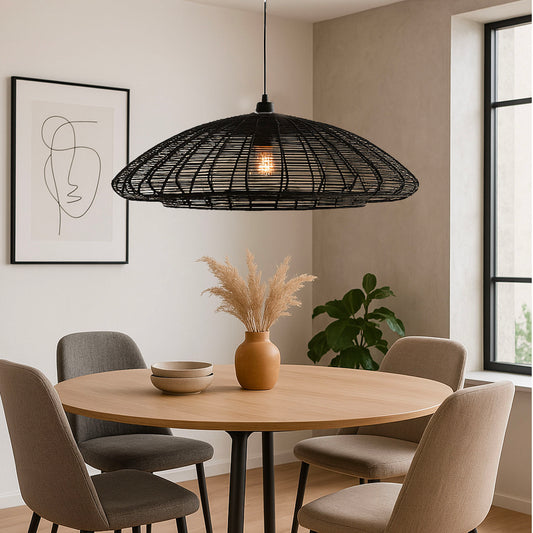 ALBA BLACK Pendelleuchte aus natürlichem Papierkabel mit E27-Fassung 80 cm Durchmesser