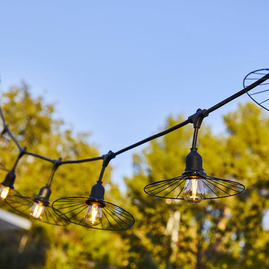 Außen anschließbare Lichtergirlande mit verdrahtetem Metallschirm 10 warmweiße LED E27-Fassung Glühlampen CHIC CAGE LIGHT CONNECTABLE 6m