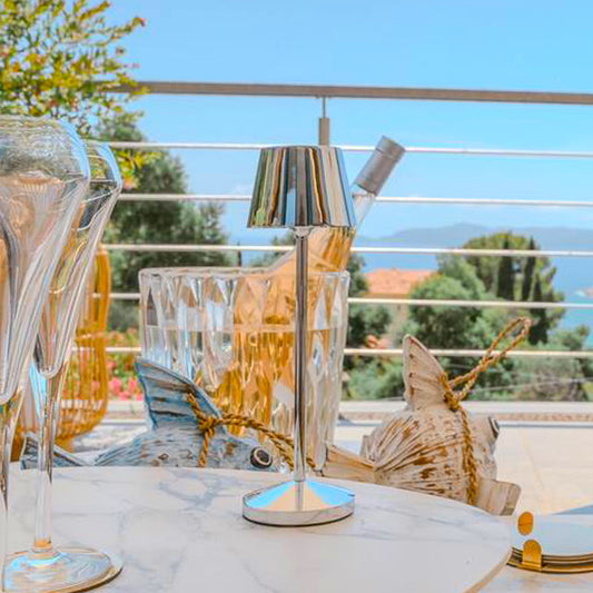 Lampe de table sans fil LED blanc chaud dimmable EMILY H25cm, Argent