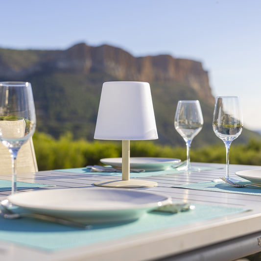 Akku-Tischleuchte Stahlfuß creme LED warmweiß/weiß dimmbar STANDY MINI Creme H25cm