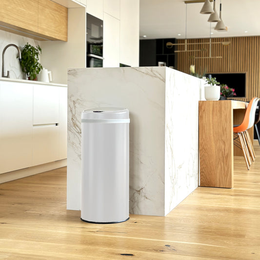 Automatischer Küchenabfalleimer 42L SOHO Glänzend weiß aus Edelstahl mit Umreifung