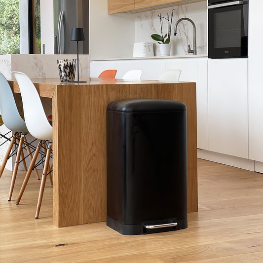 Küchen-Treteimer 40L Design GREENWICH Mattschwarz in Edelstahl mit gewölbtem Deckeleimer