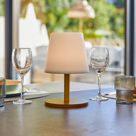 Baladeuse sans fil poignée bambou naturel LED blanc chaud dimmable AURA H27cm