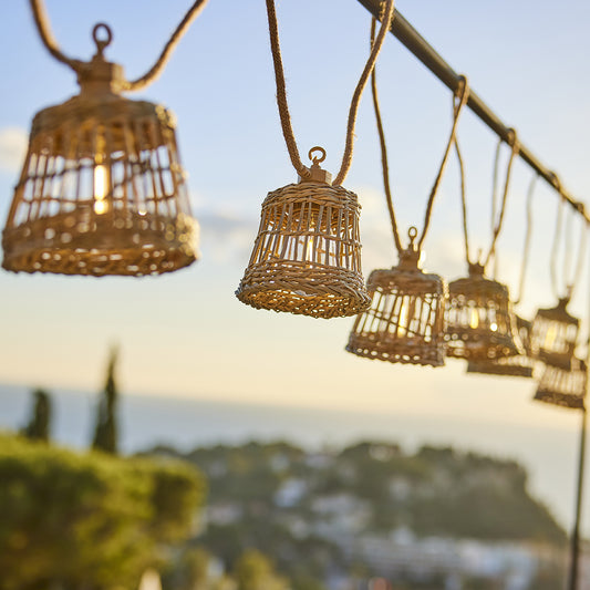 Guirlande lumineuse extérieur raccordable 10 abat-jour naturels en rotin SAMOA LIGHT HYBRID LED blanc chaud 8m solaire et sur secteur