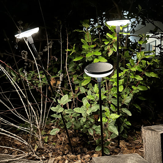 2er Set UFO warmweiße LED-Solarspikes H35cm
