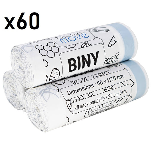 Set mit 60 weißen Müllsäcken 50L 60 x H75 CM BINY Ultra widerstandsfähig 23 Mikron mit Kordelzug