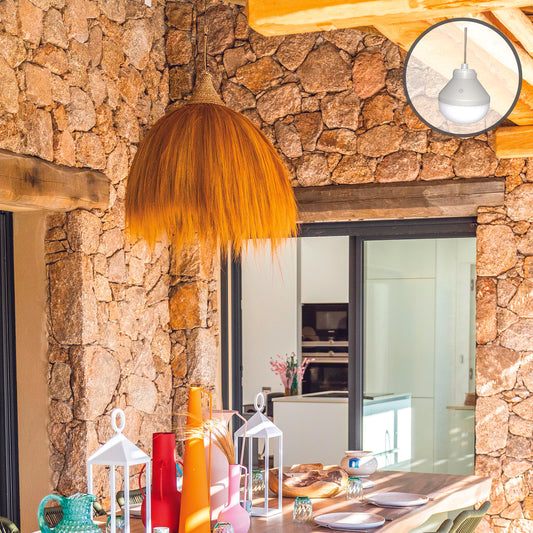 Suspension solaire GIACOMO SOLAR en rotin naturel avec câble hybride secteur et solaire 5m de longueur