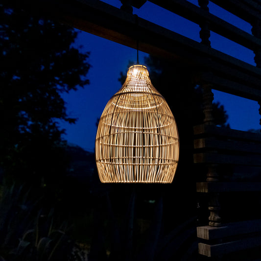 Natürliche böhmische Solar-Hängelampe im geflochtenen Flechtstil warmweiße LED HOLIDAY H42cm