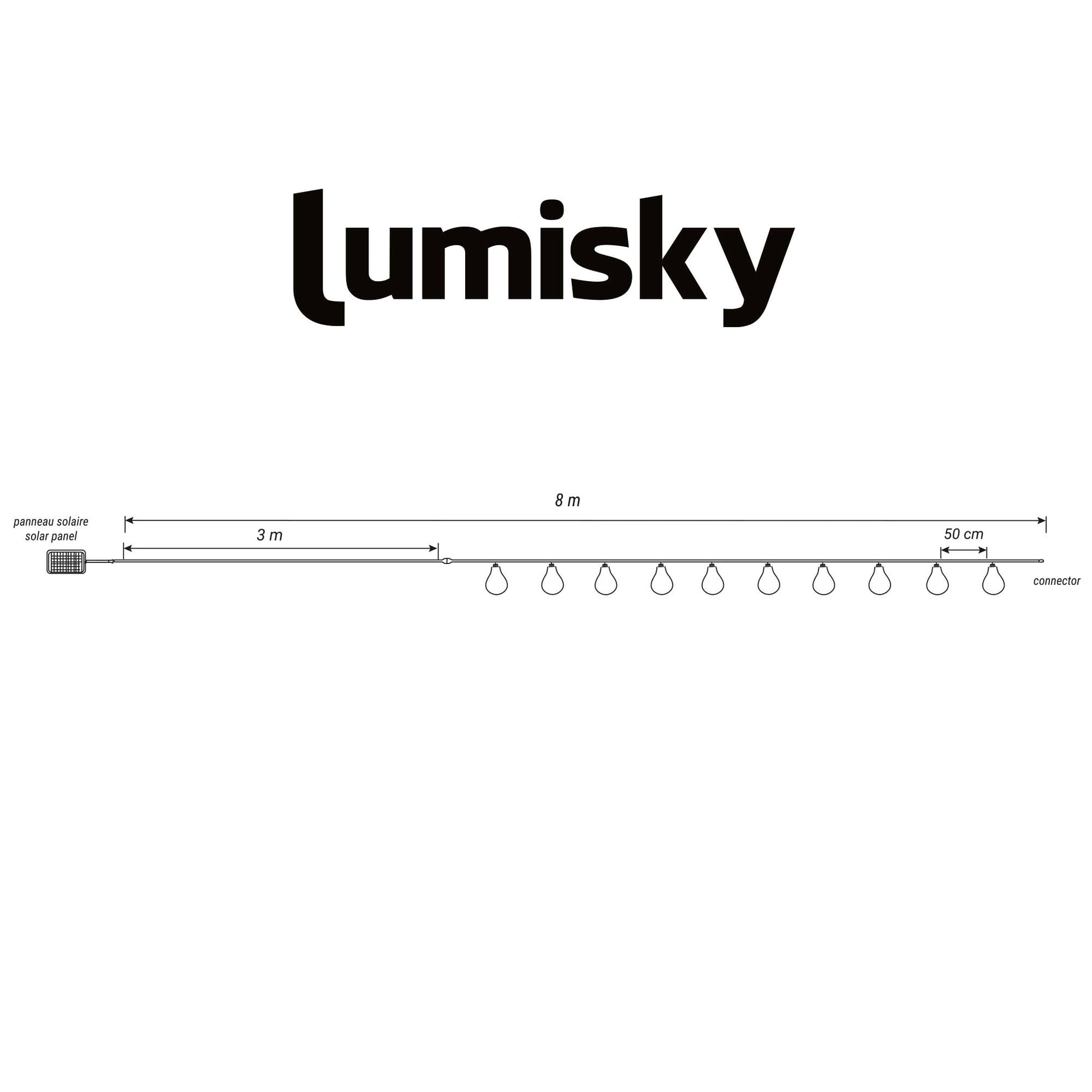 Guirlande lumineuse d'extérieur solaire raccordable 10 ampoules micro LED blanc chaud FANTASY STAR CORD SOLAR 8m