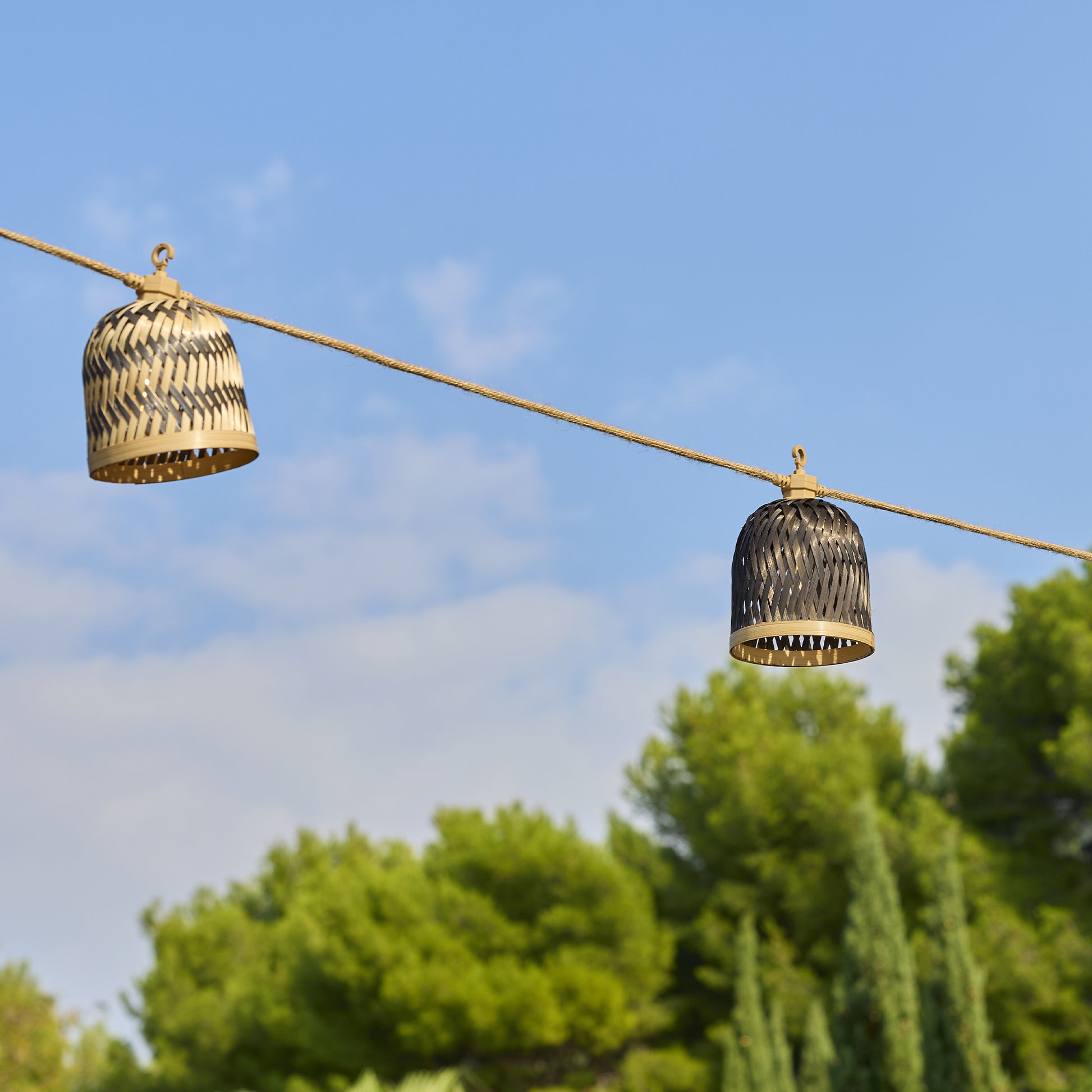 • Guirlande LED Hybride : Dotée de 10 abat-jour en bambou naturel aux motifs différents beige et noir, la guirlande Lina Light Hybrid crée une atmosphère exotique et conviviale en extérieur. Son éclairage blanc chaud, à la fois doux et festif, réussit à marier avec élégance la simplicité et l'esprit festif. Elle s'harmonisera avec tous les types de terrasses, offrant un éclairage apaisant pour rendre vos soirées en extérieur encore plus agréables.