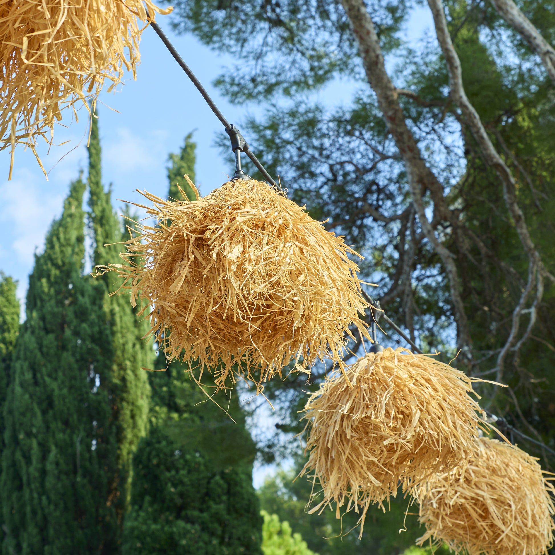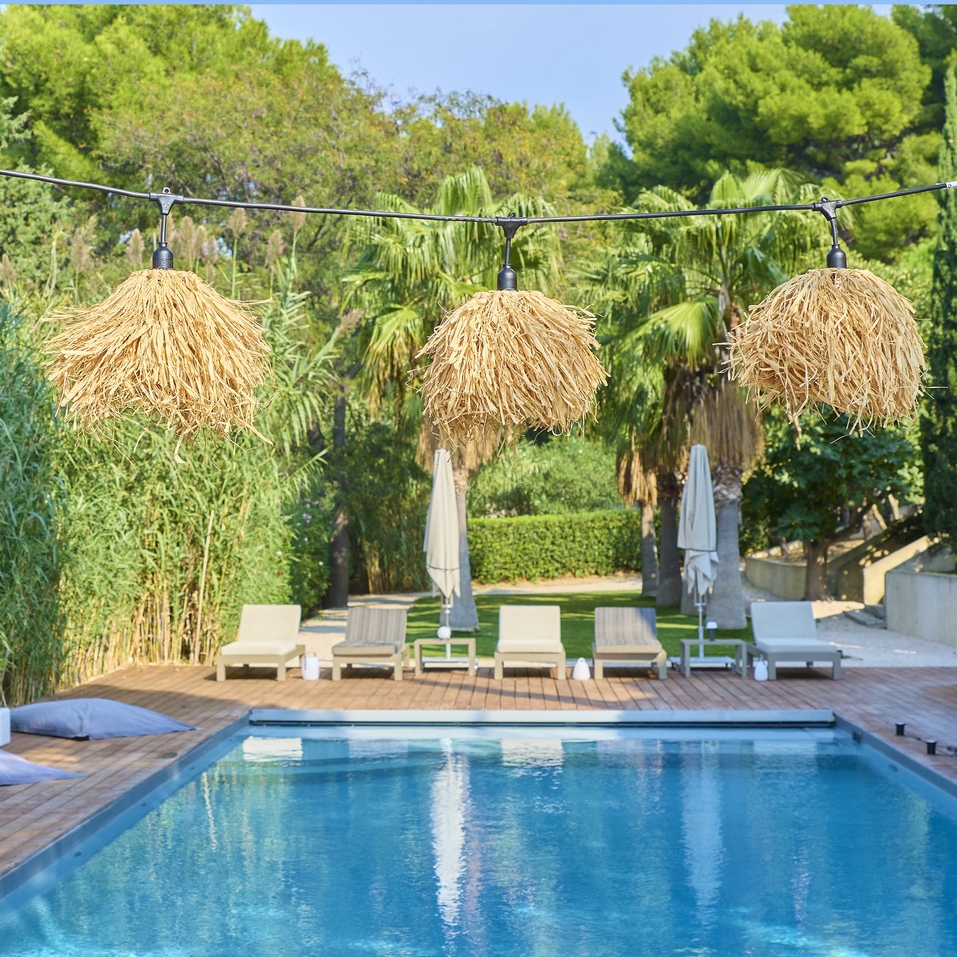 La guirlande Frufru Light se distingue par ses abat-jours en jute de 30 cm, apportant un design bohème et exotique. Ce modèle de 6 mètrès, équipé de 7 ampoules LED à filament blanc chaud (700 Lumens), crée une ambiance festive et vintage. Son système d’extension permet de raccorder jusqu’à 10 guirlandes sur une seule prise 220V, offrant une solution flexible pour illuminer de grandes surfaces. Certifiée IP64 et résistante aux UV, elle convient pour un usage en intérieur comme en extérieur. L’installation est facilitée par des crochets intégrés et un espacement de 60 cm entre chaque source lumineuse. Pour garantir sa longévité, il est conseillé de protéger les fibres naturelles de l’humidité et de la pluie en fin de saison. Parfaite pour une terrasse ou un salon, elle combine authenticité et performance technique. Cette guirlande s’adapte à toutes les situations avec un charme chic et naturel.
