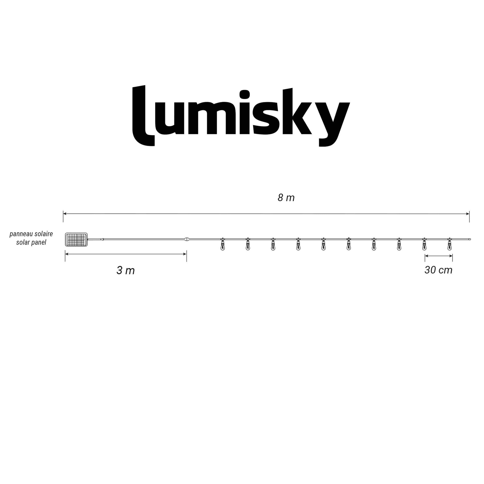 Guirlande lumineuse solaire raccordable 10 ampoules LED blanc chaud dimmable BAMBY LIGHT 8m
