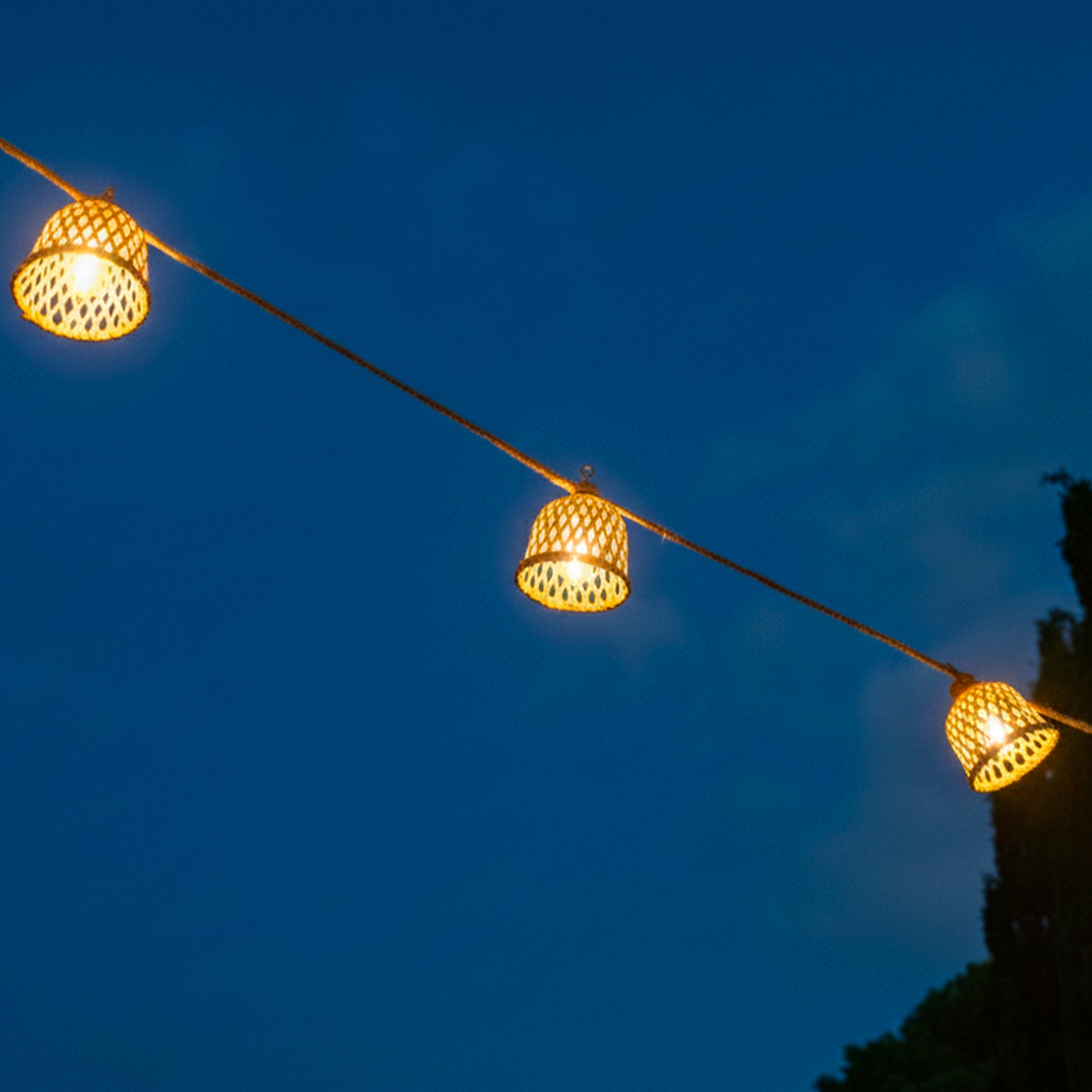 Guirlande lumineuses solaire et sur secteur raccordable en corde 20 ampoules transparentes LED blanc chaud dimmable MALY LIGHT HYBRID 13m
