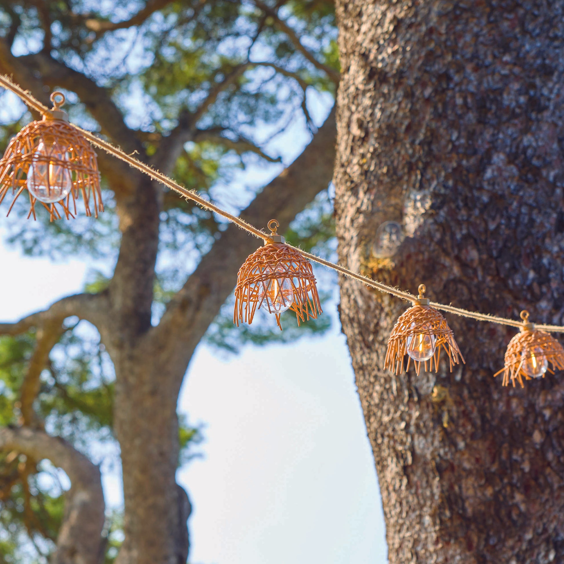 Guirlande lumineuse solaire et sur secteur raccordable en corde 20 ampoules transparentes LED blanc chaud dimmable MINI HAWAI LIGHT HYBRID 13m