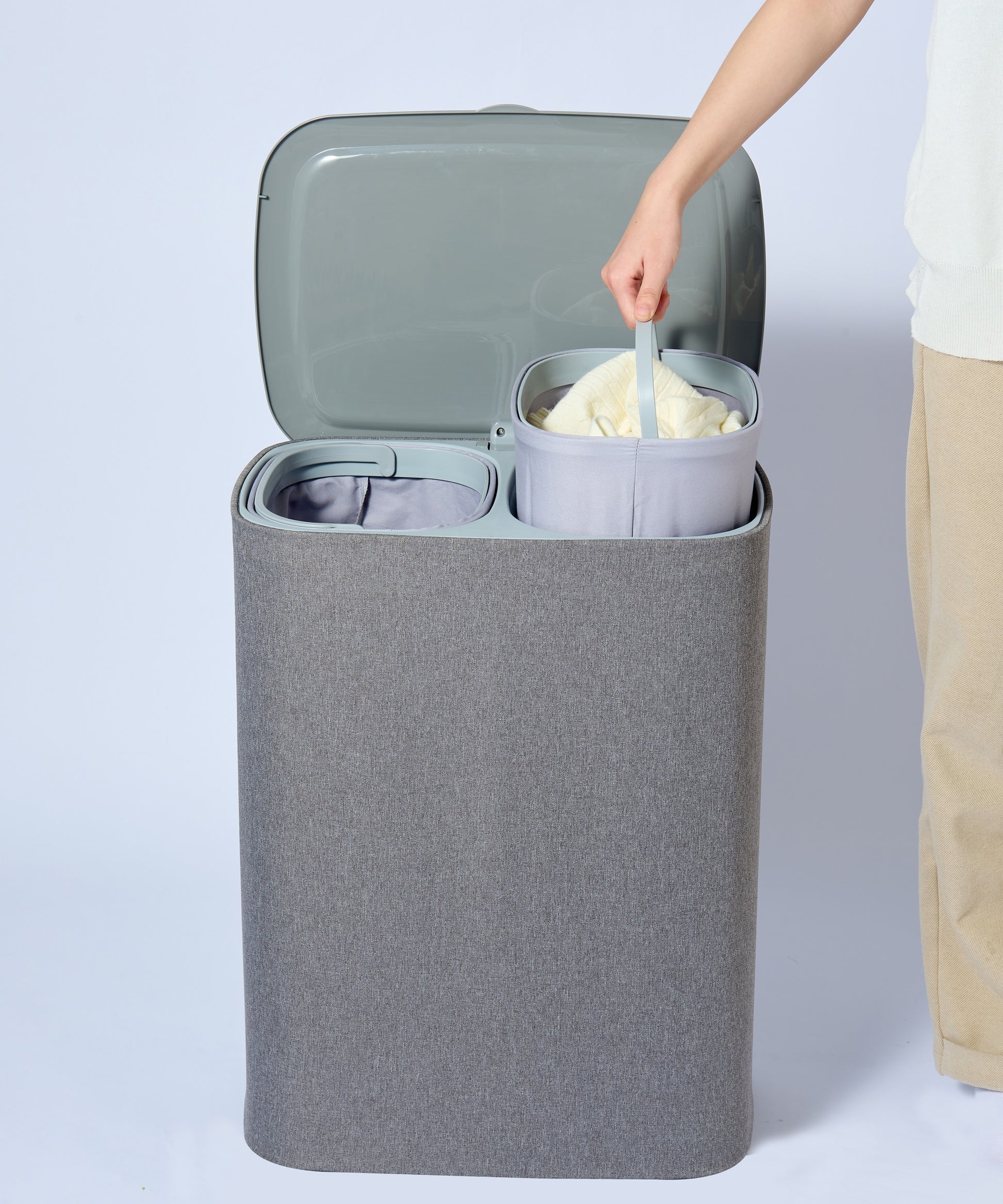 Panier à linge en tissu grande capacité 90 litres avec séparation, 2 sacs de lavage amovibles avec couvercle Modèle SVEN